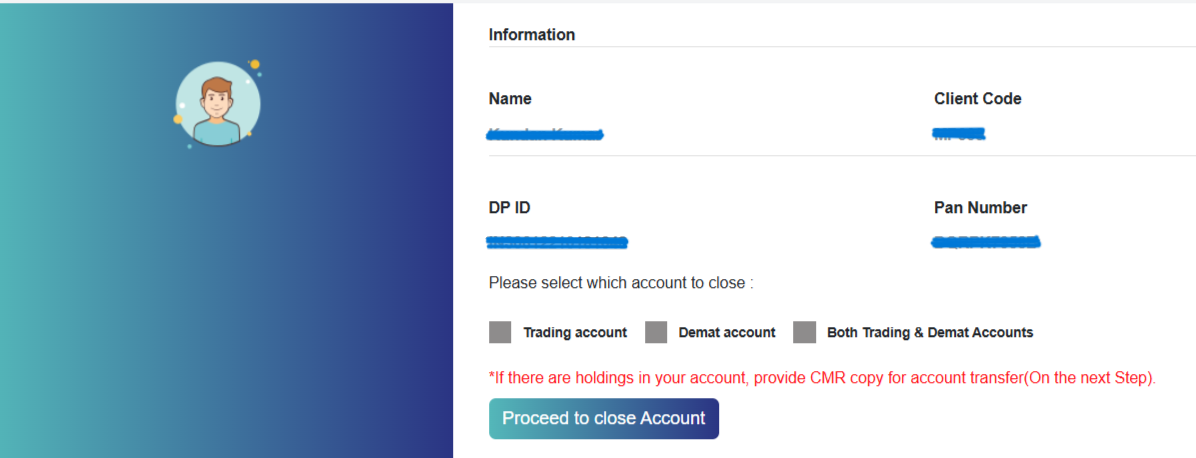 To close your trading and Demat account online, kindly follow the steps mentioned below: