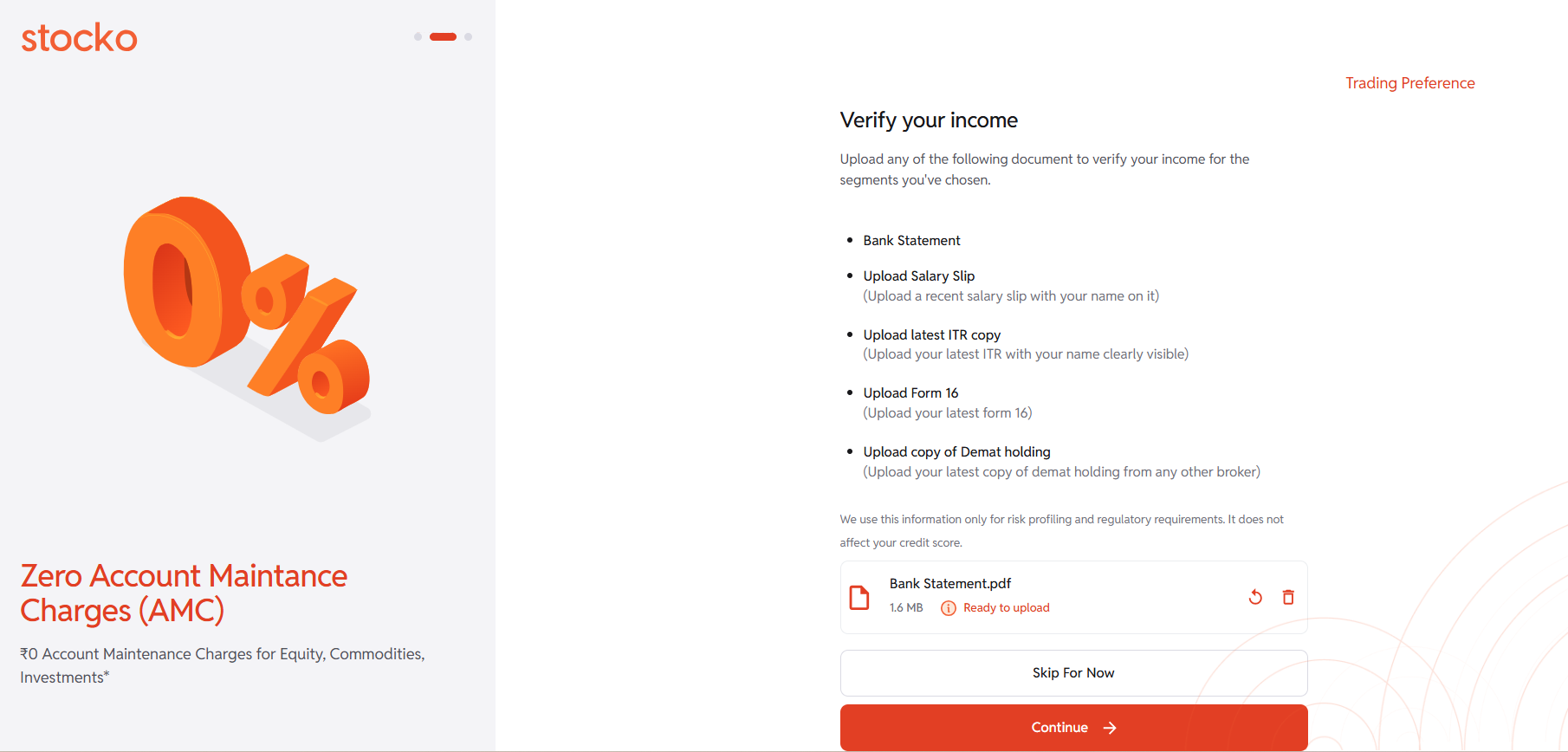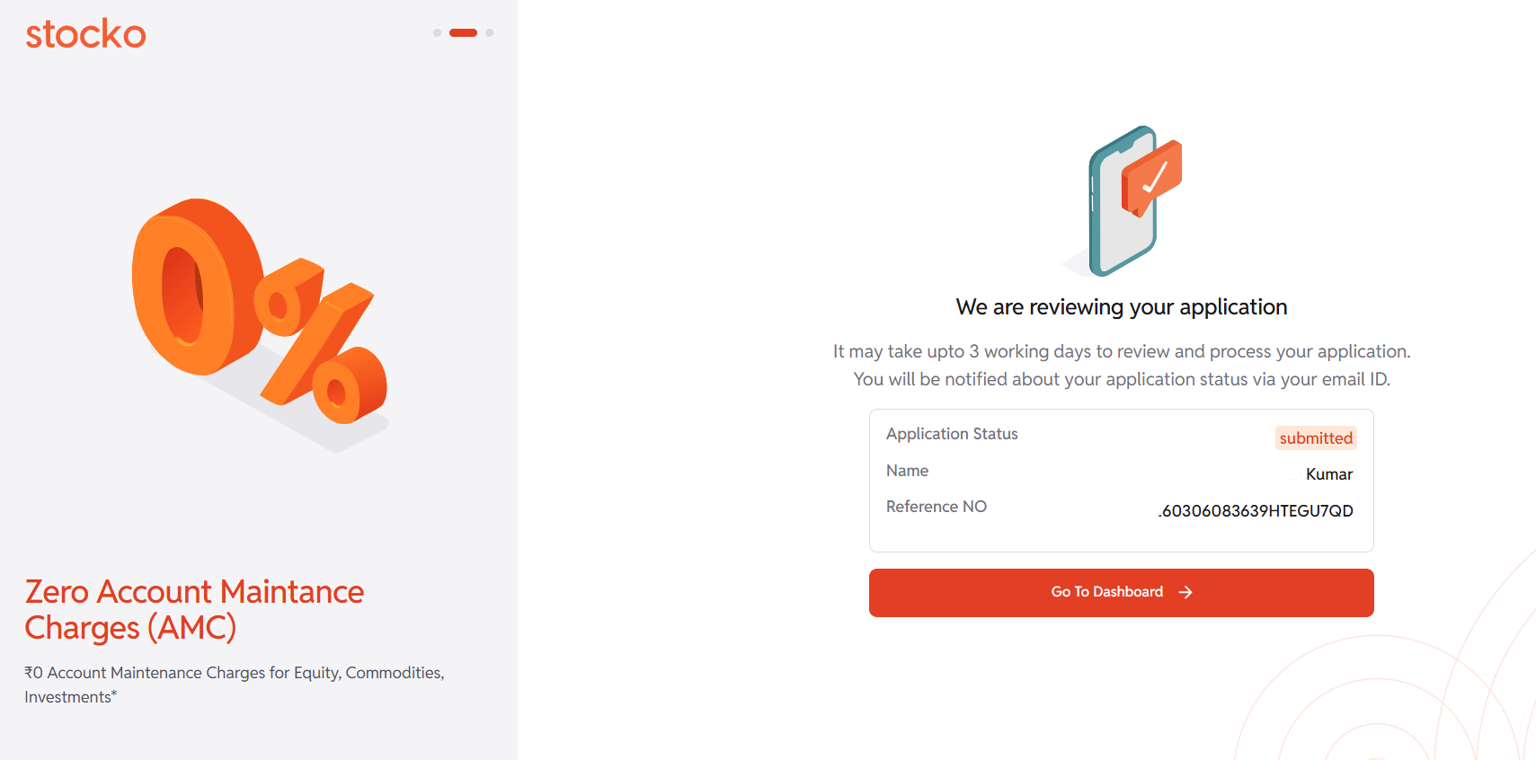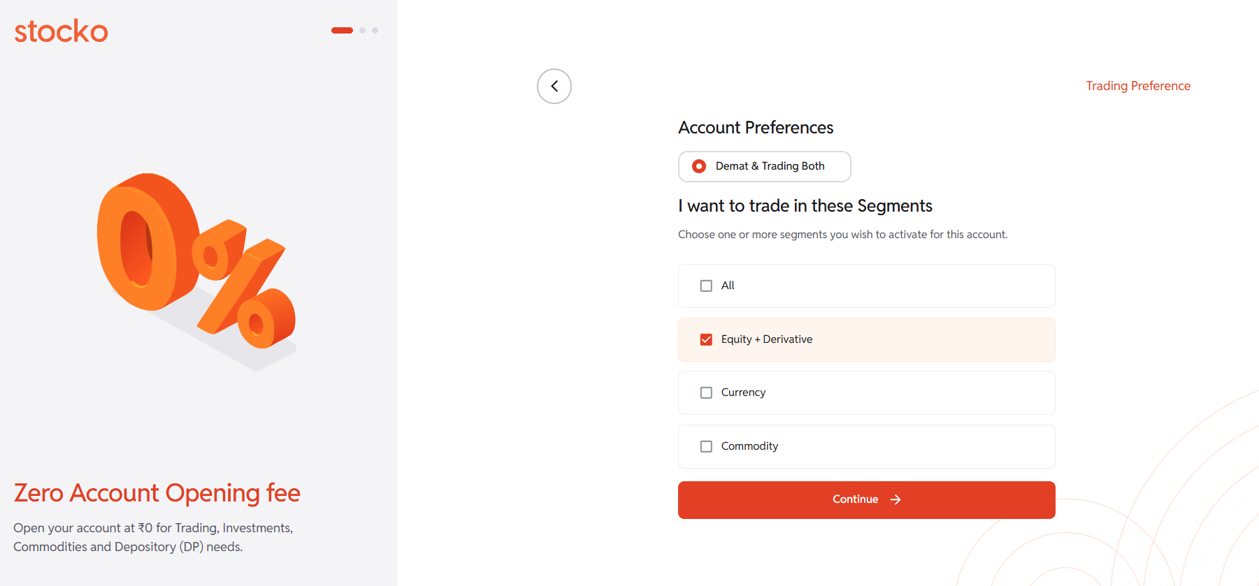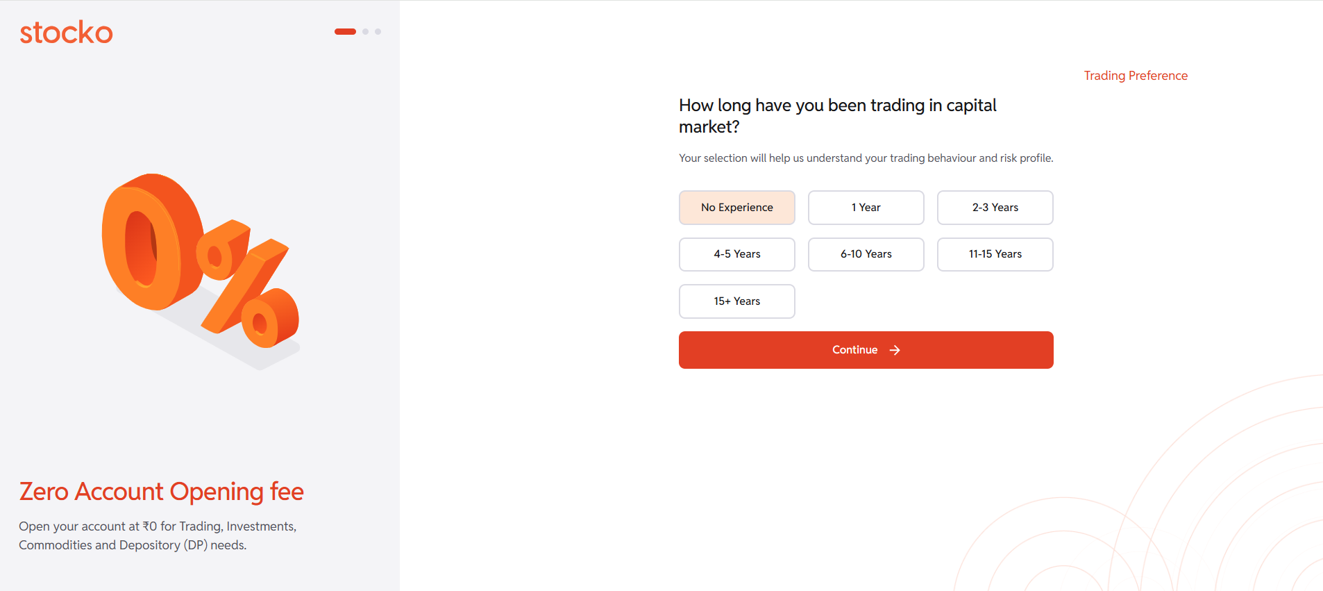 Opening an account with Stocko is a simple and paperless process. In these tech-savvy times, we have kept the procedure very simple and just a click away. For any assistance during the process, you can contact our sales team at +91-11-4040-9900. Kindly follow the steps mentioned below for detailed information on online account opening.
