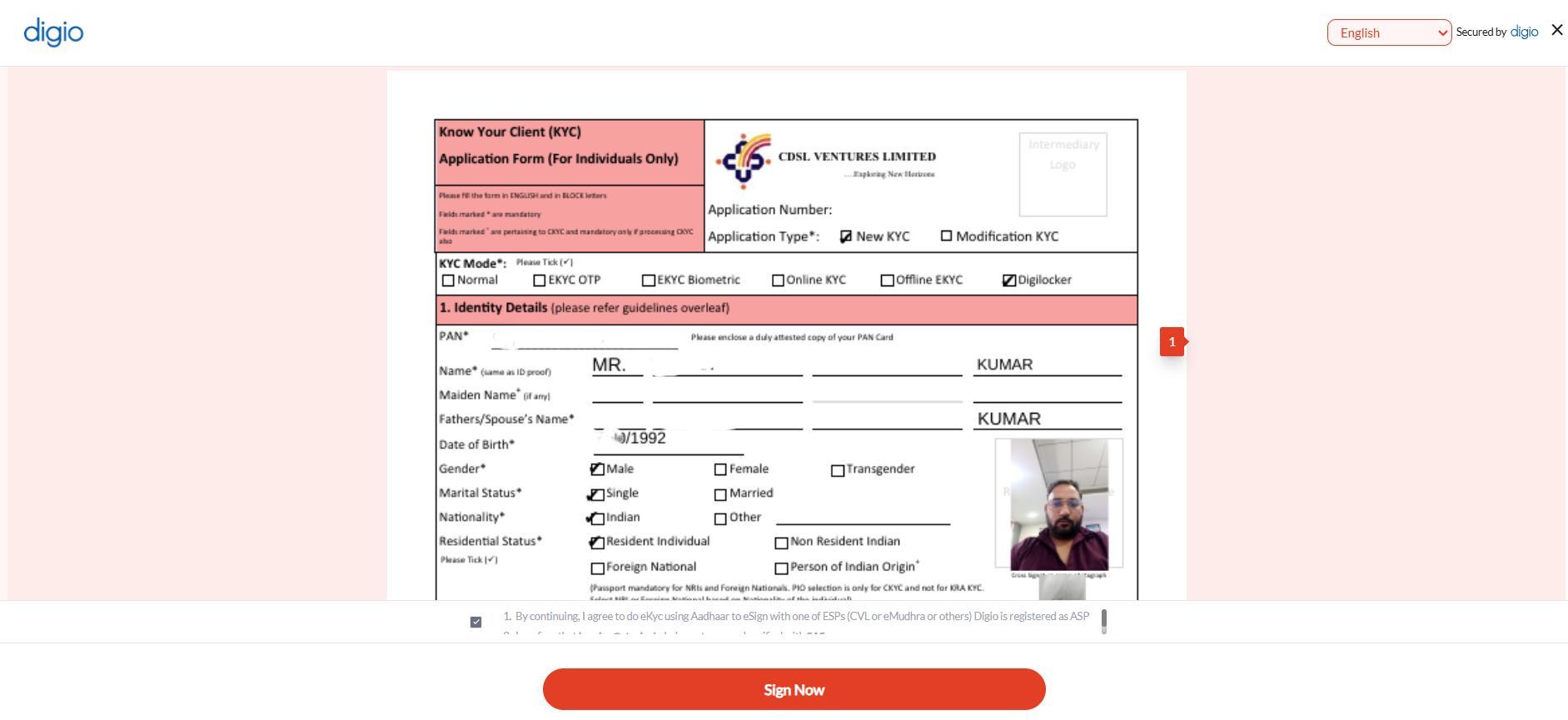Complete the KRA+KYC E-sign process via your Aadhaar Based OTP.
