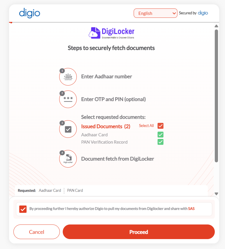 Complete the DigiLocker Process via your Aadhaar Based OTP.