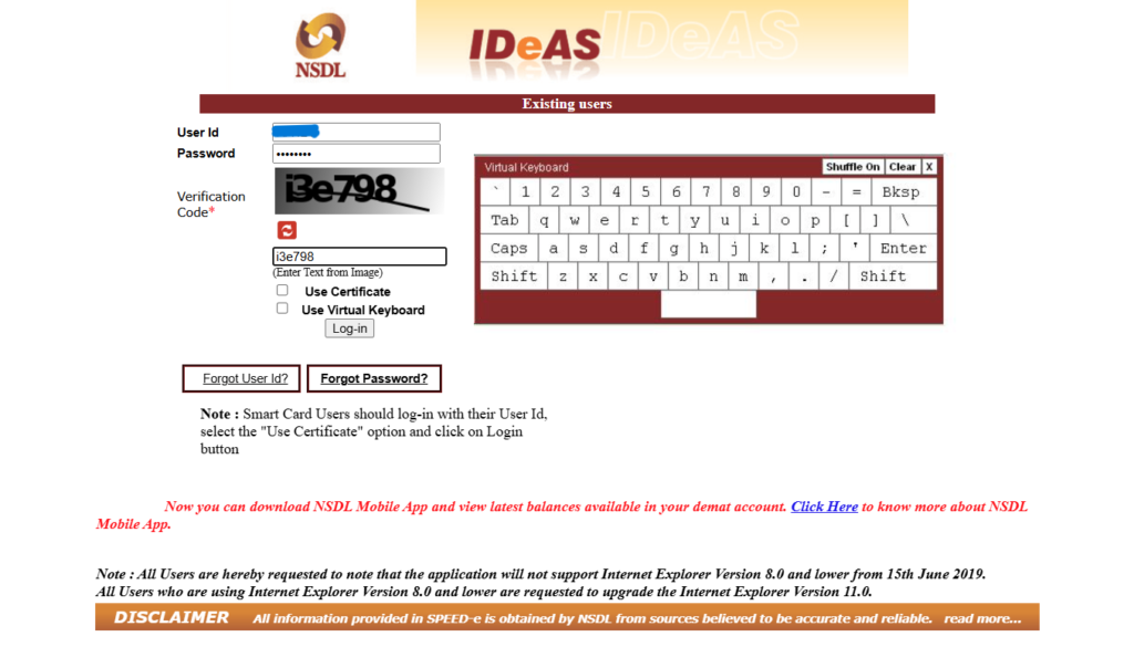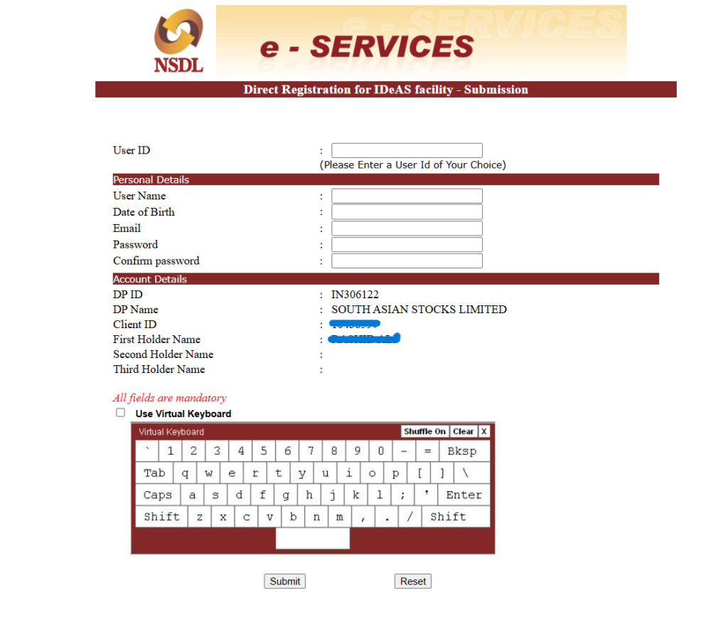 Step 4: After registration, create your User ID and Password to log in to the IDeAS service.